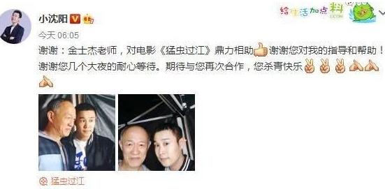 高娛傳媒藝人經(jīng)紀公司訊 小沈陽,已經(jīng)是家喻戶曉的搞笑人物了,春晚出演小品《不差錢》,一夜成名,網(wǎng)上傳出,離開趙本山,單飛的消息,最近一直沒有新的作品。11月6日一大早小沈陽微博曬出一組自己與老戲骨金士杰老師的合影,并發(fā)文寫到:謝謝金士杰老師,對電影《猛蟲過江》鼎力相助,謝謝您對我的指導和幫助!謝謝您幾個大夜的耐心等待。期待與您再次合作,您殺青快樂。